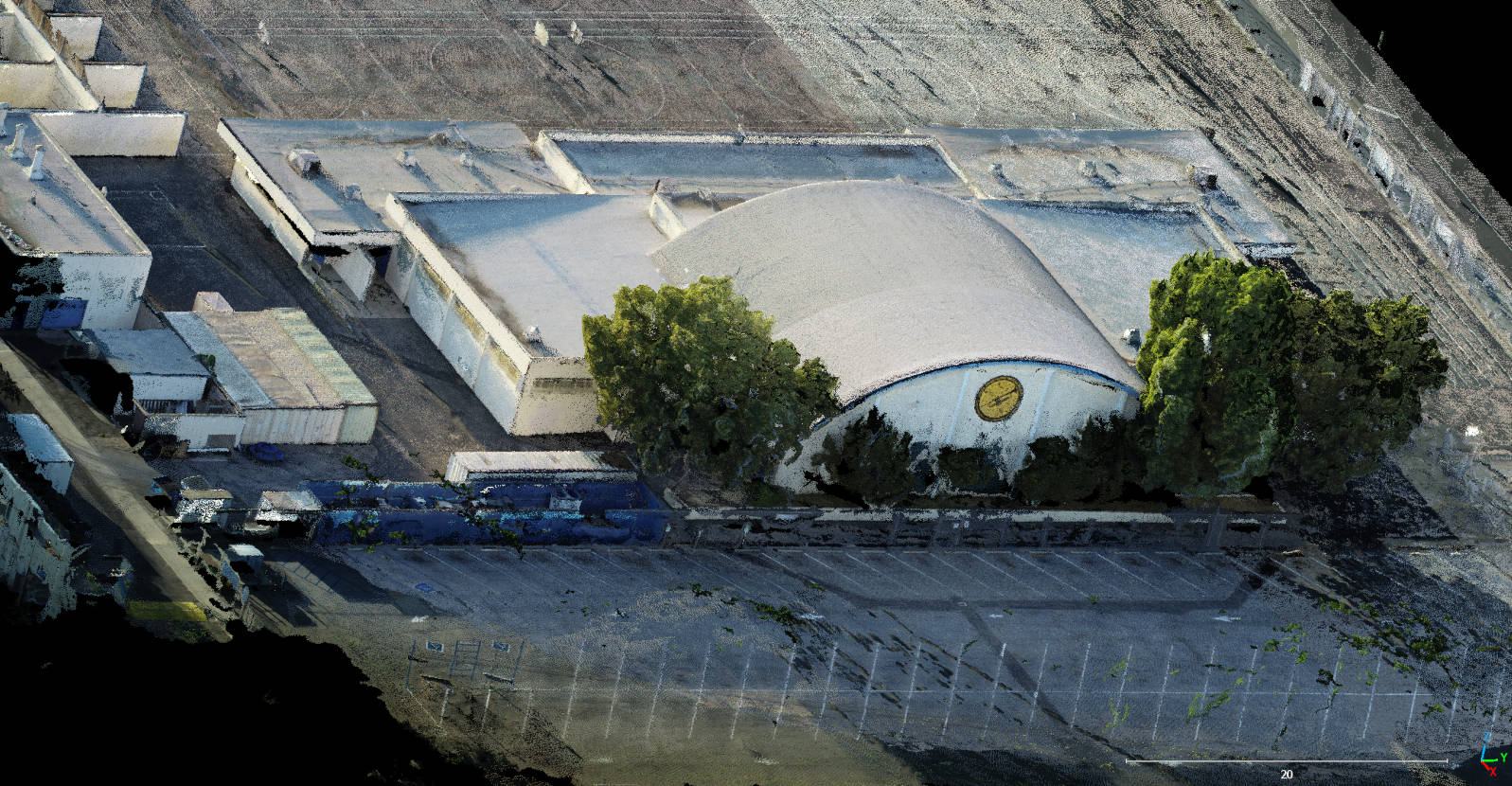 Dense point cloud preview showing spatial geometry captured from overlapping drone imagery. Full-resolution dataset and viewer access available upon request.