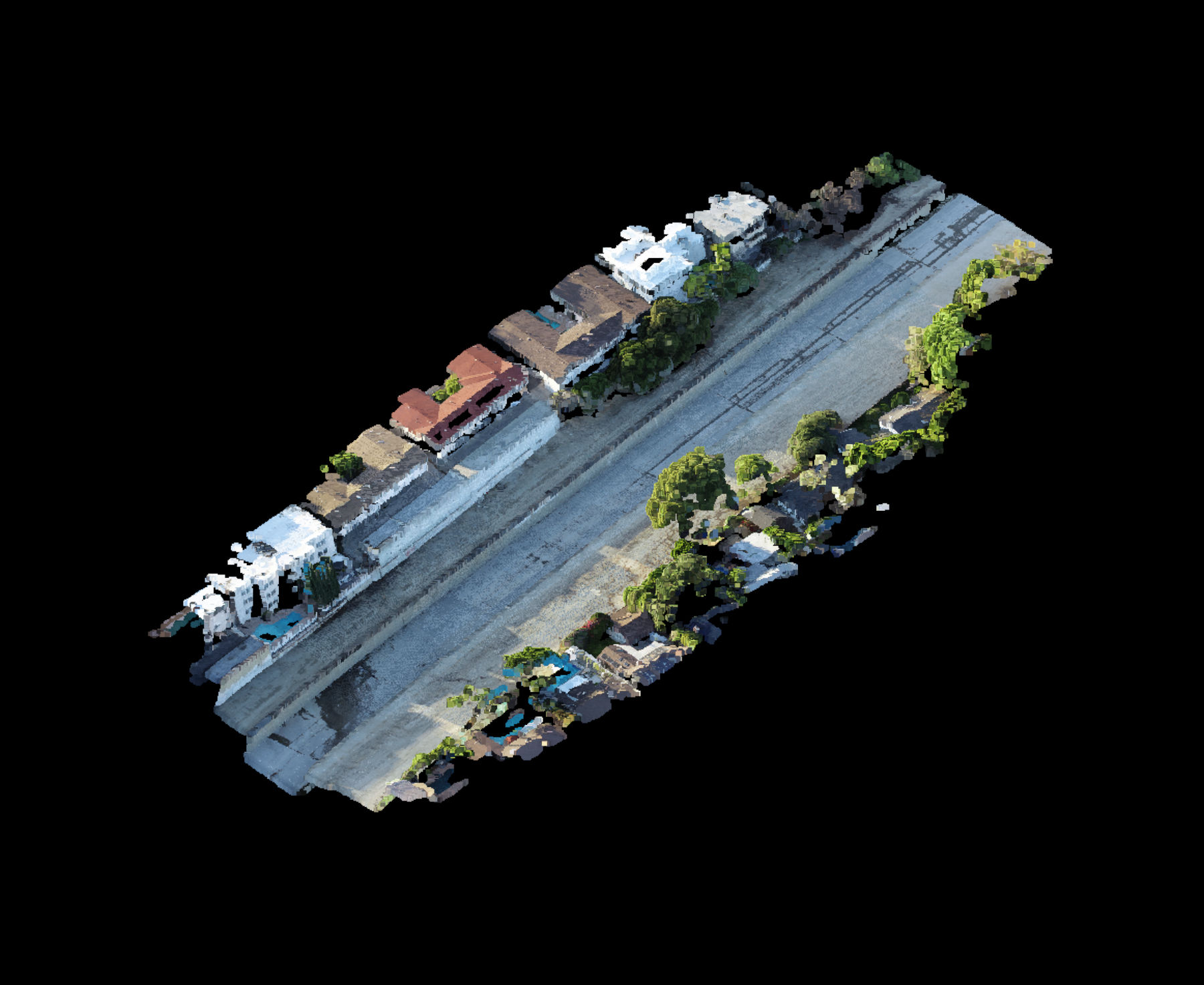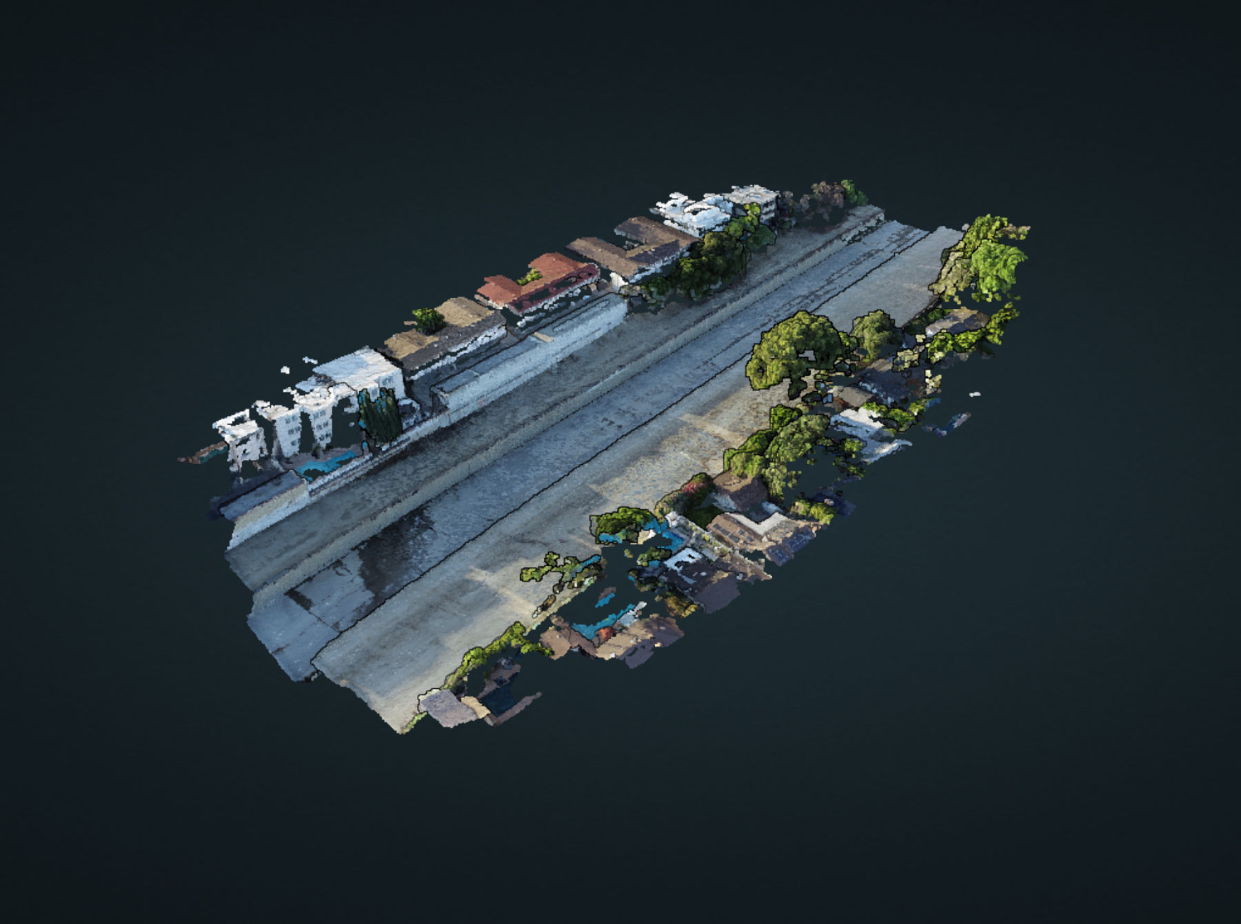 Detailed 3D reconstruction of buildings, terrain, and structures using drone photogrammetry.